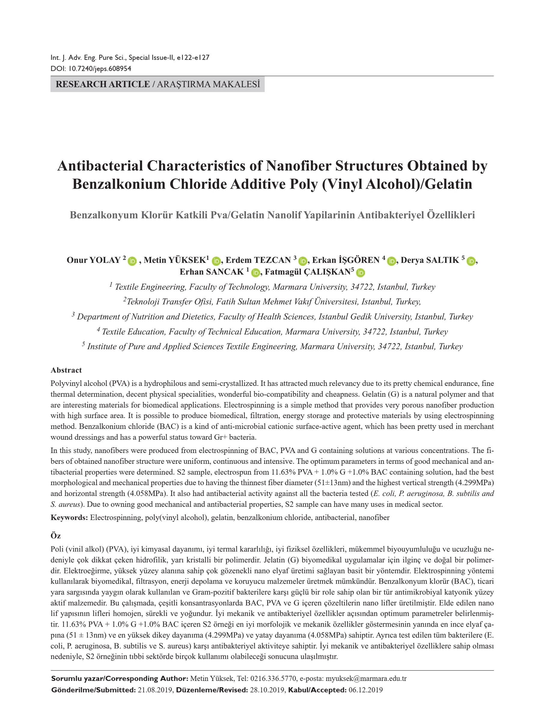 Benzalkonyum Klorür Katkı Poli (Vinil Alkol)/Jelatinden Elde Edilen Nanofiber Yapıların Antibakteriyel Özellikleri