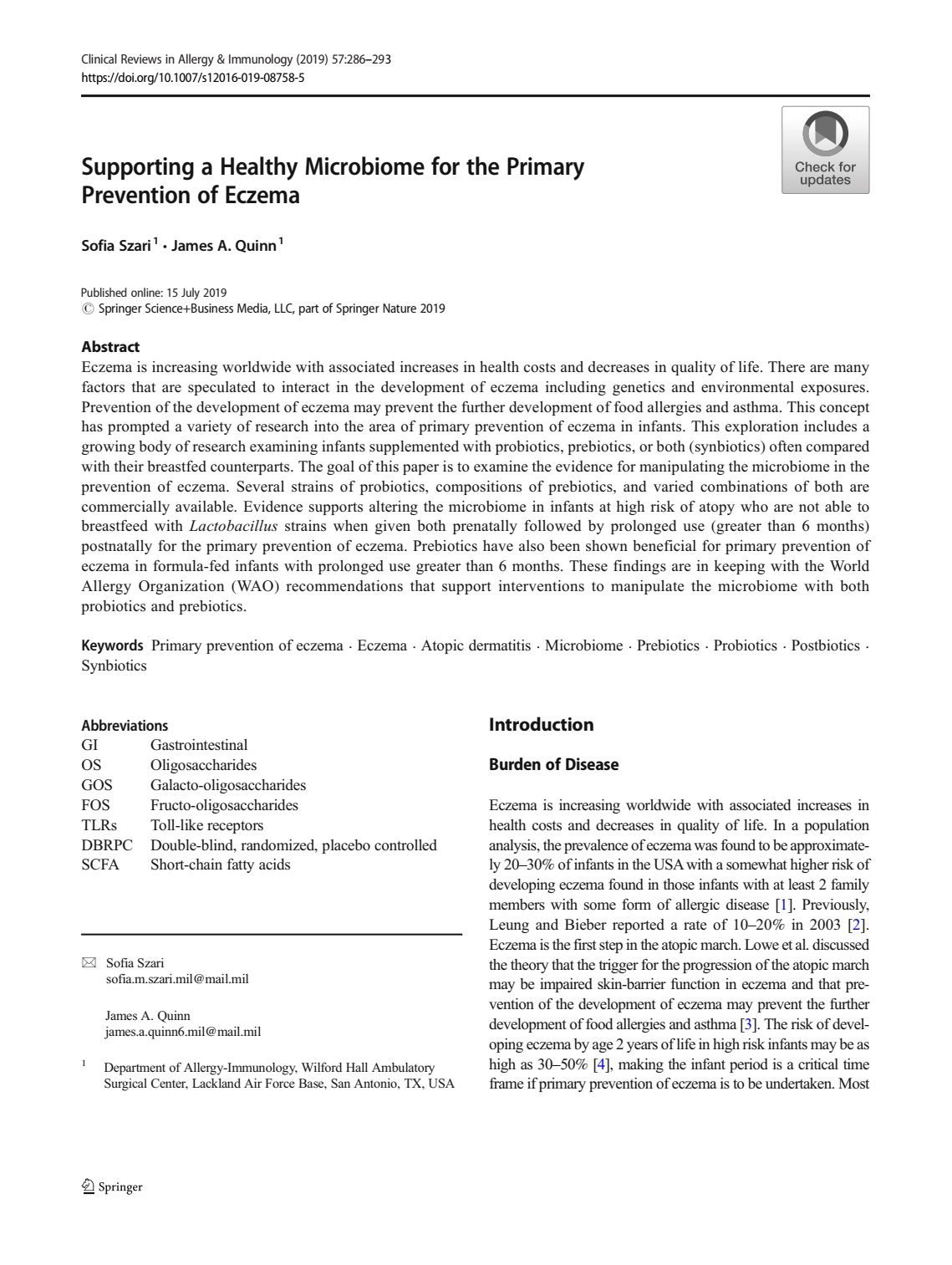 Supporting a Healthy Microbiome for the Primary Prevention of Eczema